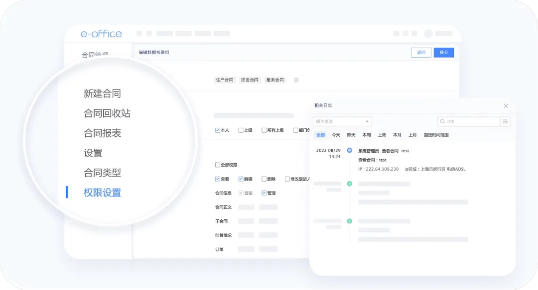 泛微e-office对合同分类分权管理,留痕操作日志,有效控制风险。