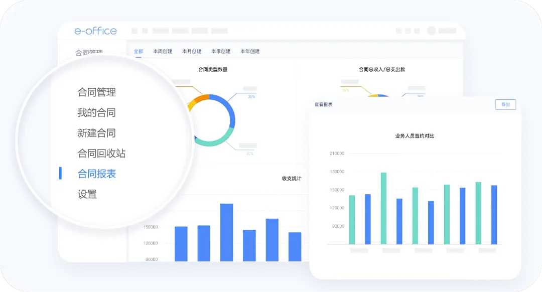 泛微e-office将合同数据可视化分析,多维报表呈现,智能统计汇总。