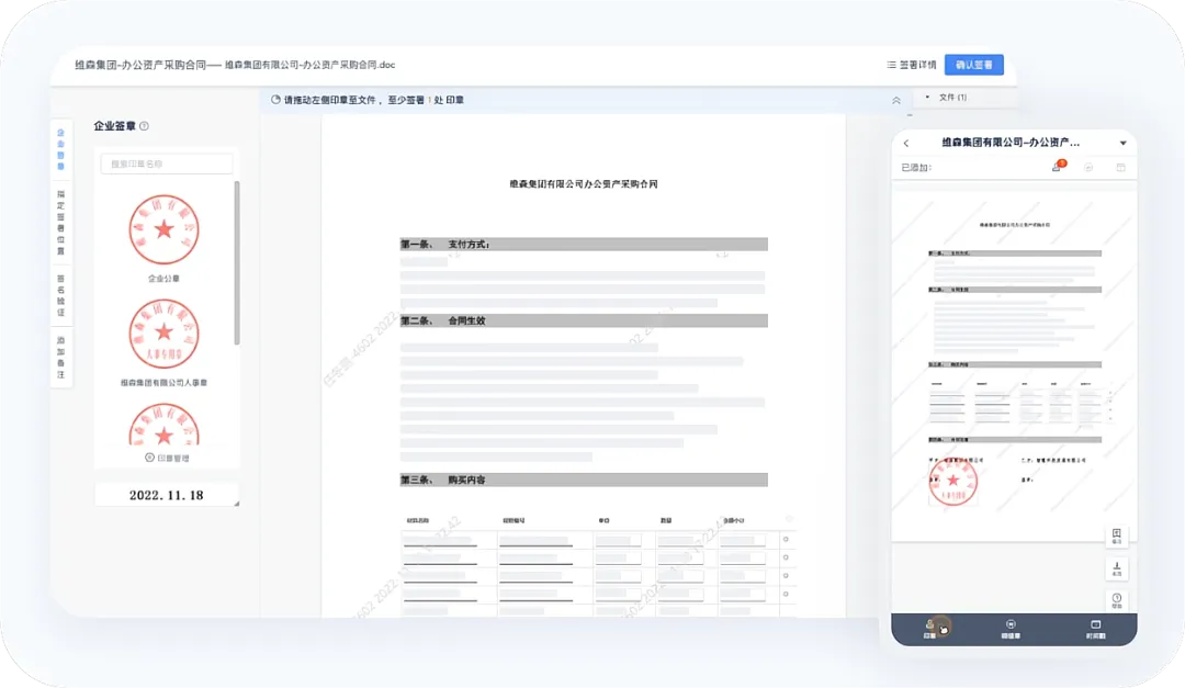 合同审批全程无纸化,发起人身未动一步,合同已高效运转。
