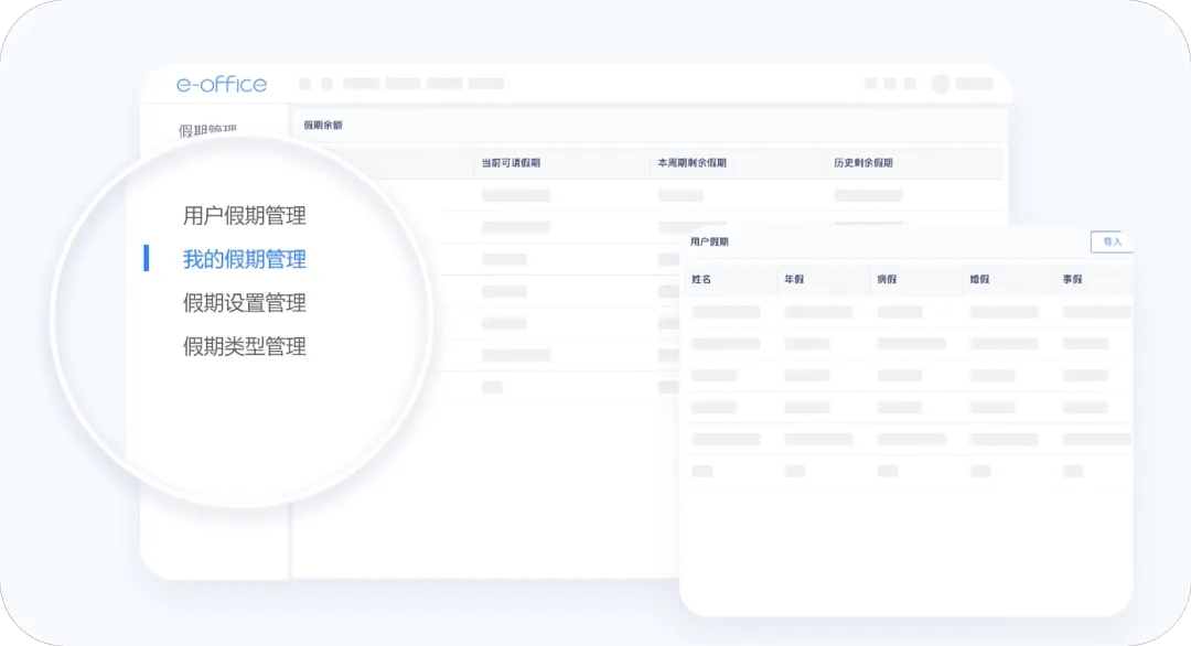线上假期“银行”,动态跟踪假期增减。泛微e-office为每位员工打造一个假期“银行”,提供假期信息自助查询窗口,统一管理各类假期信息,通过流程实现自动扣减,动态跟踪假期余额。