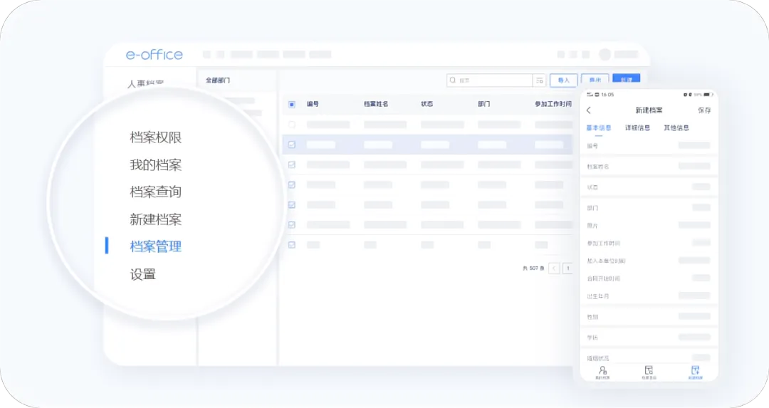 同步组织架构,数字化档案管理。泛微e-office为每位员工建立一份人事档案,全面记录背景、学历、专长等人员信息。档案信息同步组织架构,细化查询、管理权限,建立数字化人事档案管理体系。