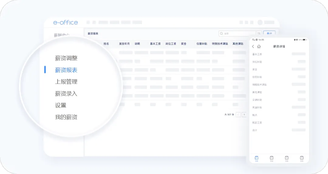 另外,泛微e-office通过多种发薪模式,打通人事档案,连接内外人员,实现内外一体的薪酬管控。