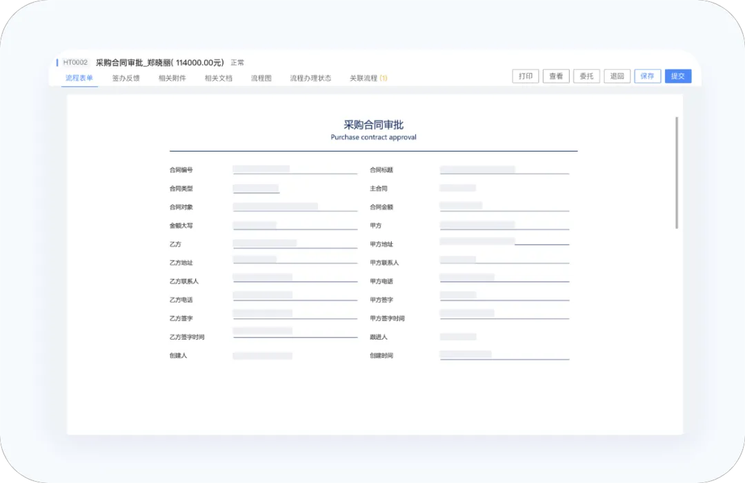 · 根据采购金额、类型等实现自动条件判断、智能流转。